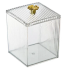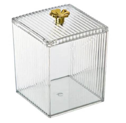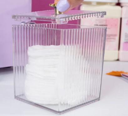 Su pequeño tamaño y diseño transparente lo hacen perfecto para guardar y organizar productos como hisopos, toallitas, esponjas y cualquier elemento que necesitás tener a mano pero resguardado del polvo y la humedad.